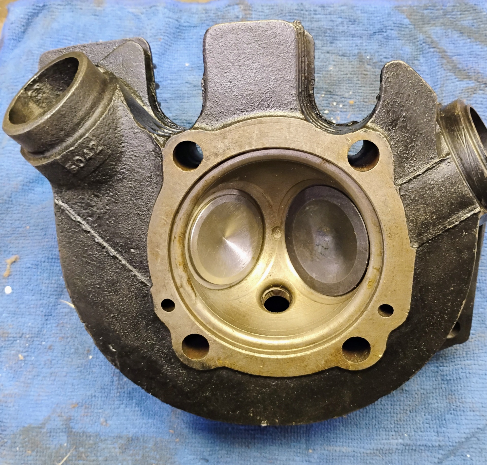 COMPLETE HEAD WITH THE EXHAUST SEAT AREA MACHINED FOR A HARDENED SEAT AND A 1 5/8 DIA VALVE