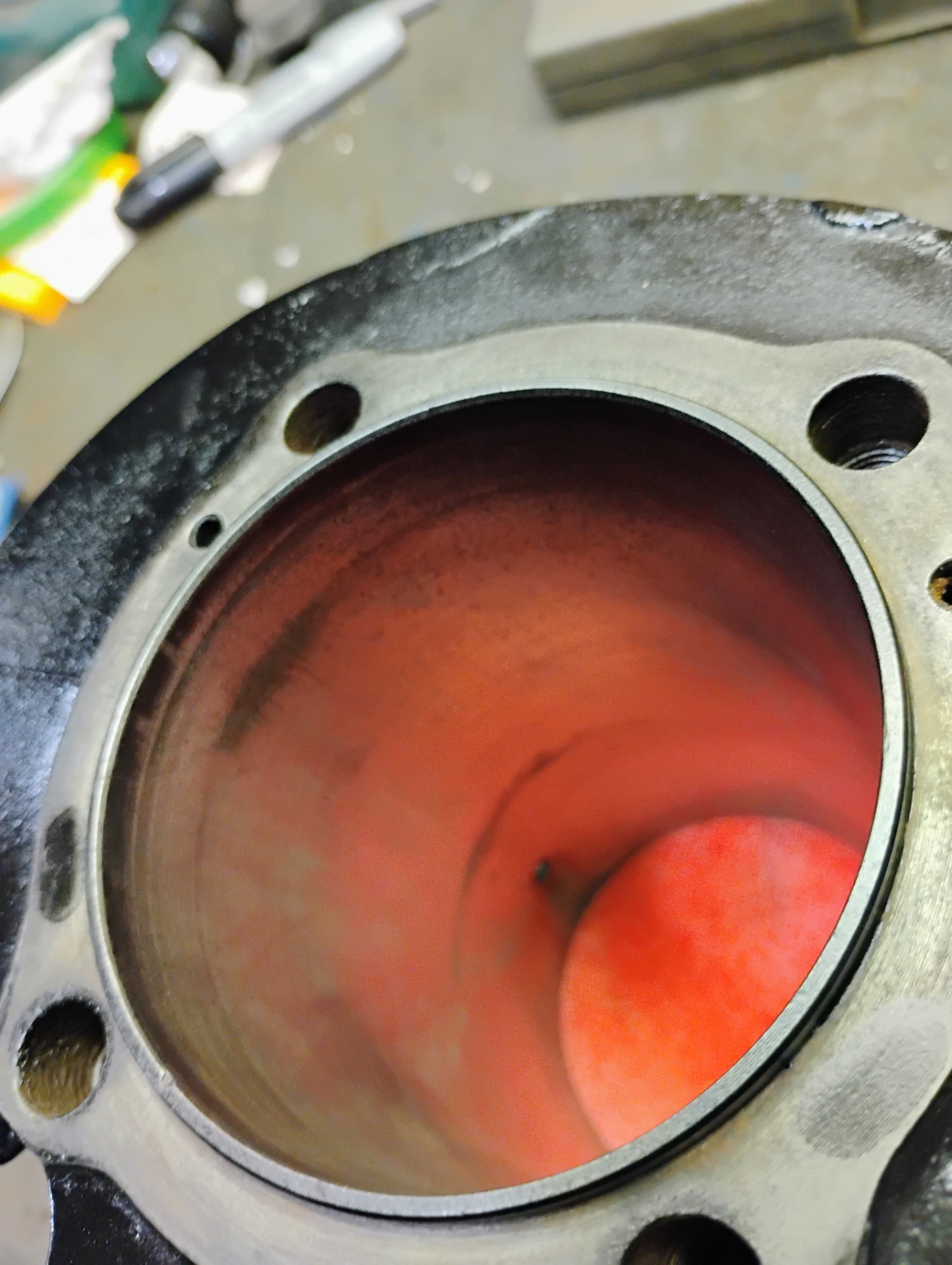 FIRE DAM DIA= 3.400 BORE - 3.189 (STD), BUT HAS BAD GROOVES IN THE WALL AND WILL NEED BORED TO AT LEAST .040